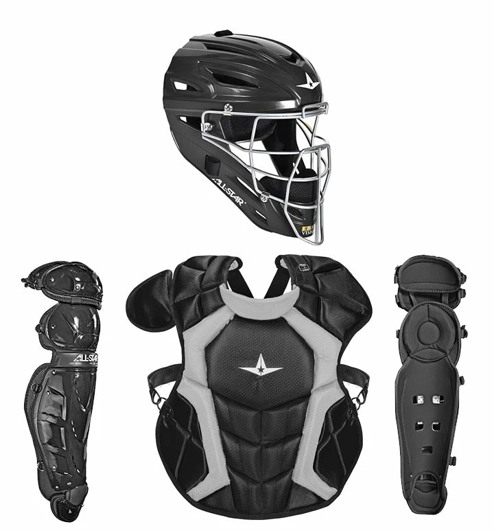 Hit the field in the all-new All-Star Pro League High School Catcher’s Kit NOCSAE Approved. The All-Star Classic Pro Catcher’s Kit includes the MVP 2400 solid gloss helmet, CPCC1618S7X chest protector (meets NOCSAE standard), and LG21WPRO classic leg guards, making it the ideal kit for players or teams on a budget.