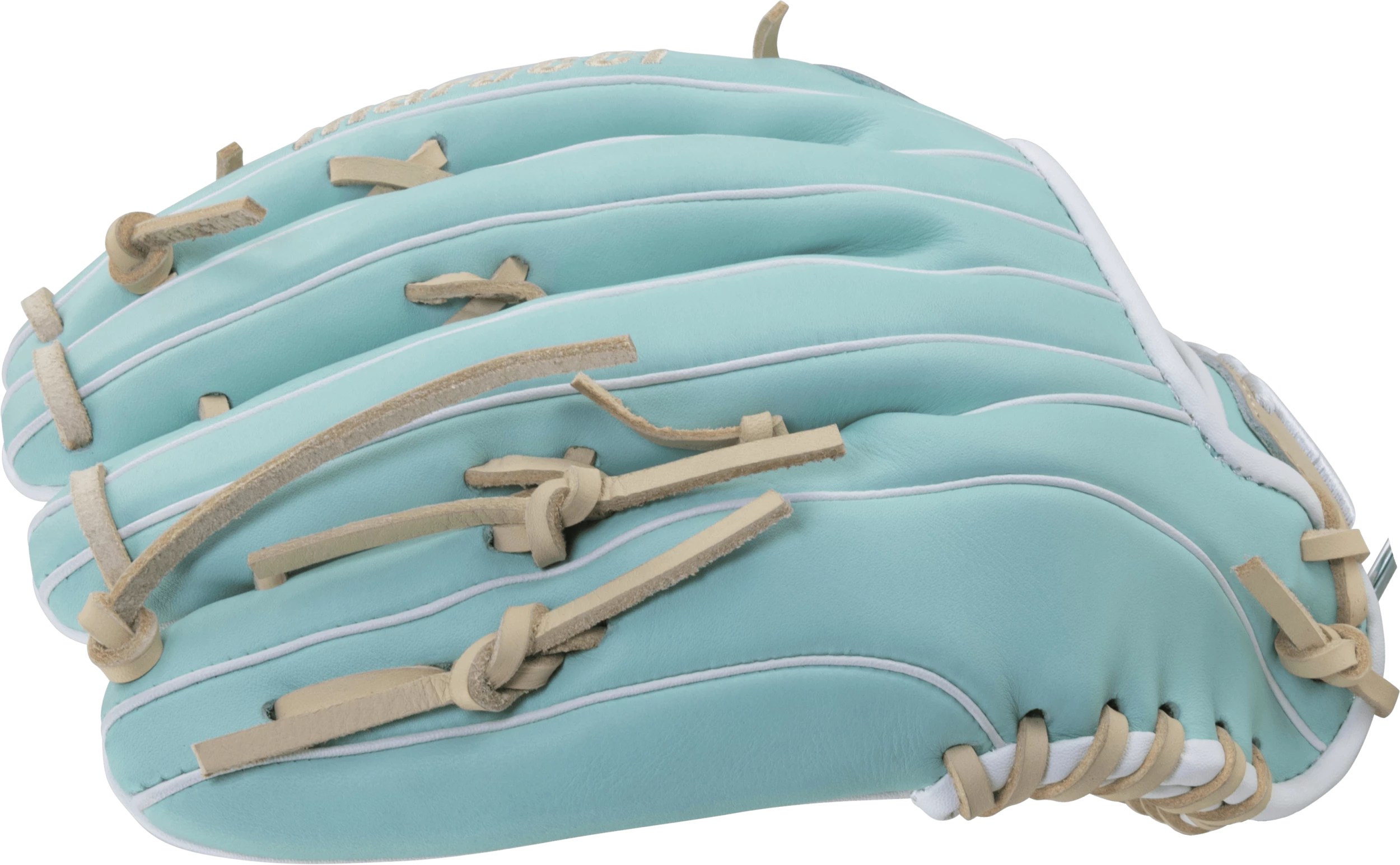 M Type fit system provides integrated thumb and pinky sleeves with enhanced thumb stall cushioning to maximize comfort and feel. The Marucci Palmetto 12.5″ fastpitch softball glove offers a deep pocket and tapered hand stall which provides a better fit and fielding control. This outfield softball glove is built for the female outfielder looking for a beautiful mint blue colorway.